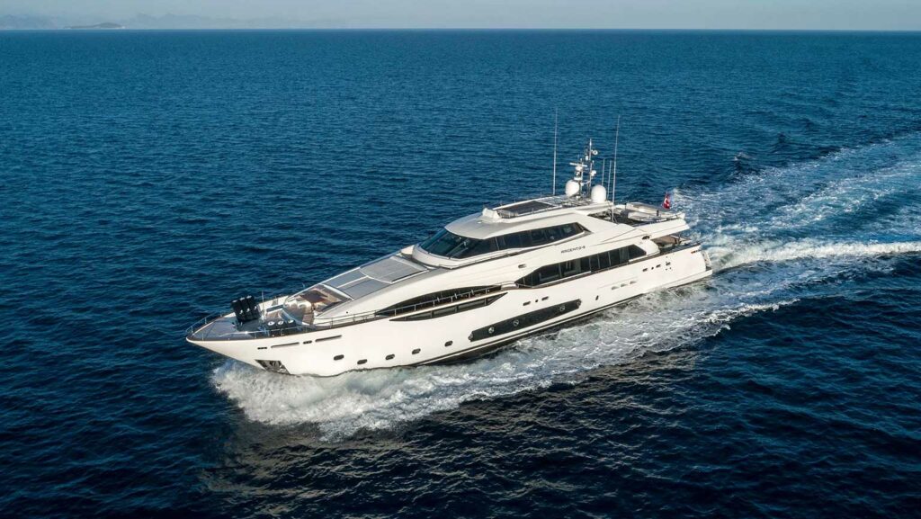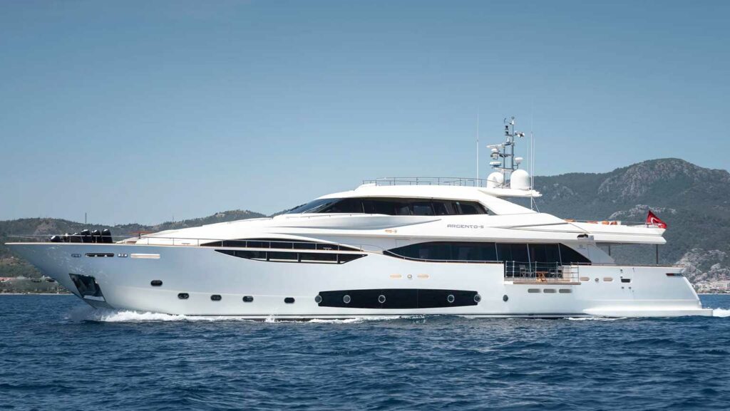 The 37.8-metre Custom Line motor yacht Argento has been sold with Jack Robertson of HMY Yacht Sales representing the seller and Yasemin Ilhan of Nautique Yachting introducing the buyer.